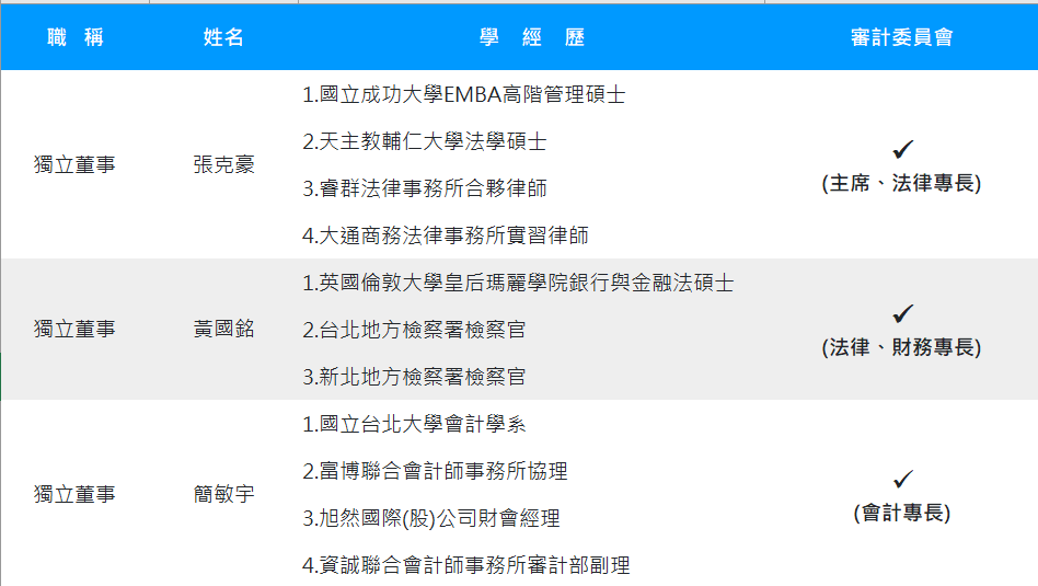 依據公開發行公司審計委員會行使職權辦法規定,審計委員會應由全體獨立董事組成,其人數不得少於三人,其中一人為召集人, 且至少一人應具備會計或財務專長。