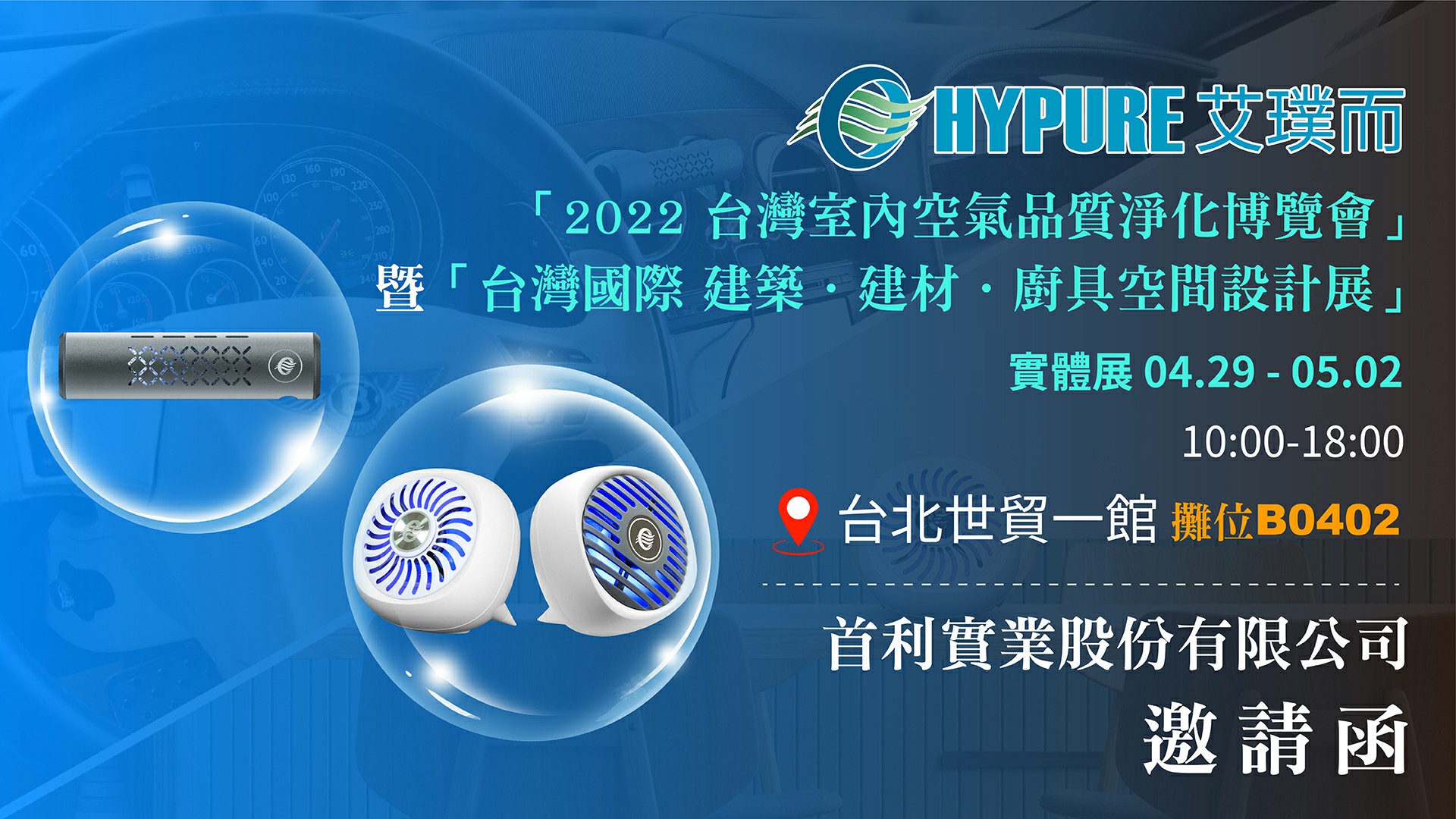 首利實業(1471)今年參加「2022台灣室內空氣品質淨化博覽會」邀請大家共襄盛...首利實業(1471)今年參加「2022台灣室內空氣品質淨化博覽會」於4月29日至5月1日在「2022台北國際 建築 廚具空間設計展」世貿一館舉行,推廣台灣高科技奈米光觸媒抑菌力高... -