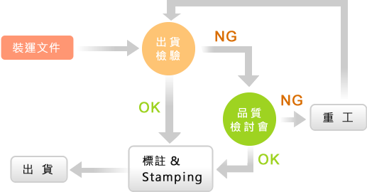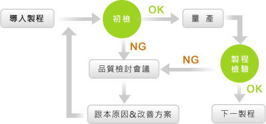 工廠之製造生產皆以 ISO 國際標準為依據,列有手冊。每一單位流程皆以國際標準程序完成,使生產過程標準化、一貫化,讓產品之品質良率提升。